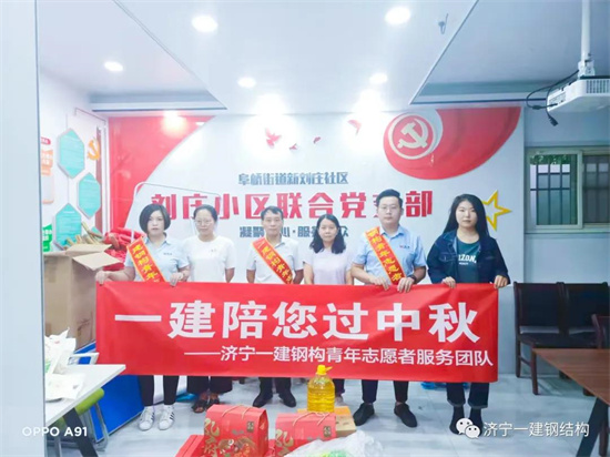 2021年9月18日上午9时许“幸福时刻-- pp电子官网陪您过中秋"主题活动在济宁pp电子官网钢结构工程有限公司启动,此次活动得到了任城区民政局、共青团任城区委、阜桥街道的关注与支持,并出席了本次启动仪式和大家欢庆中秋,他们是民政局党组成员王培让局长、共青团区委张珣书记、济宁pp电子官网钢结构有限公司王长留董事长、区民政局社工和慈善促进科杜海霞科长、阜桥街道民政办刘伟波主任,欢迎各位领导的到来。参加本次活动的还有社区社会组织和志愿者,青年志愿者、“幸福拾光”志愿者、暖心港湾项目志愿者团队。 阜桥街道解放路社区魏宪金书记致欢迎词
