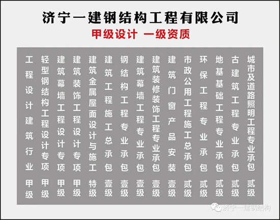 济宁pp电子官网钢结构工程有限公司,隶属中煤建设集团,集团注册资金1.0158亿元人民币,下设工程部、设计部、技术部、质检部、生产部、安全部。拥有钢结构施工、设计双甲资质、制造壹级资质,幕墙施工、设计双甲资质,装饰装修施工、设计双甲资质,建筑金属屋面设计与施工特级资质,门窗施工壹级资质,并具有对外承包施工资质和劳务输出资质等九项国家甲级资质。主要从事钢结构网架工程、管桁架工程、装配式轻钢别墅工程、幕墙工程、膜结构工程及大型储罐工程的设计、生产与施工,公司相继承揽了机场航站楼、体育场馆、省级科技馆、大型厂房、高速路服务站、国家石油储库、加油站、储煤仓等各类工程,施工范围涉及全国三十多个省、市、自治区及直辖市,工程质量合格率100%,多年来荣获国内建筑界各类奖项100余个。